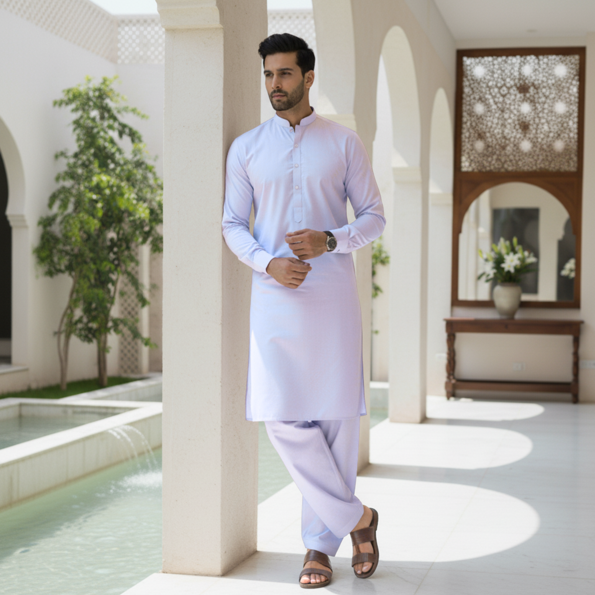 Behold the magnificence of ITALIAN, an unrivalled fusion of polyester and viscose, meticulously crafted on state-of-the-art high-speed air jet weaving machines. Revel in the sublime comfort of this premium, exceptionally lustrous, and enduring fabric. Its enchanting array of shades, spanning from the gentlest hues to the deepest tones, will undoubtedly rejuvenate your senses throughout summers.